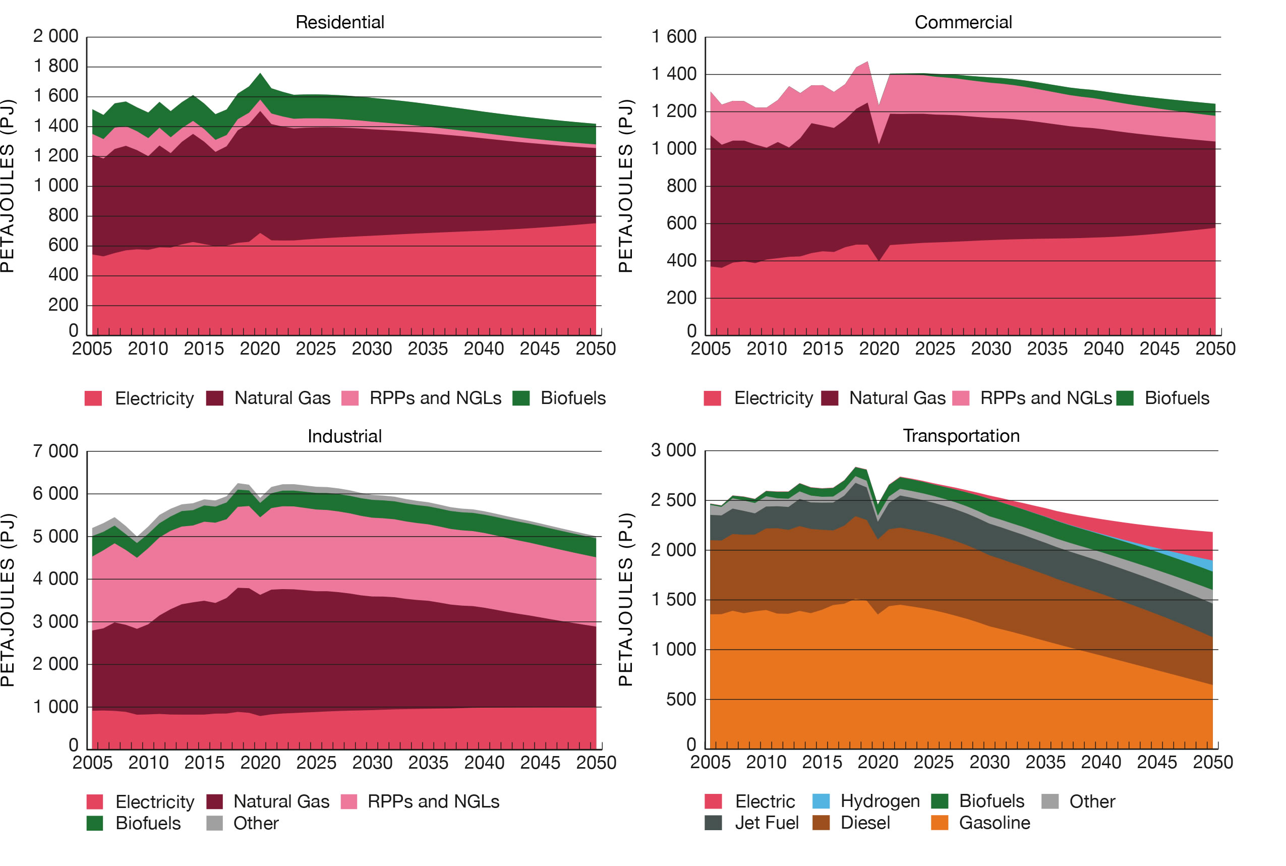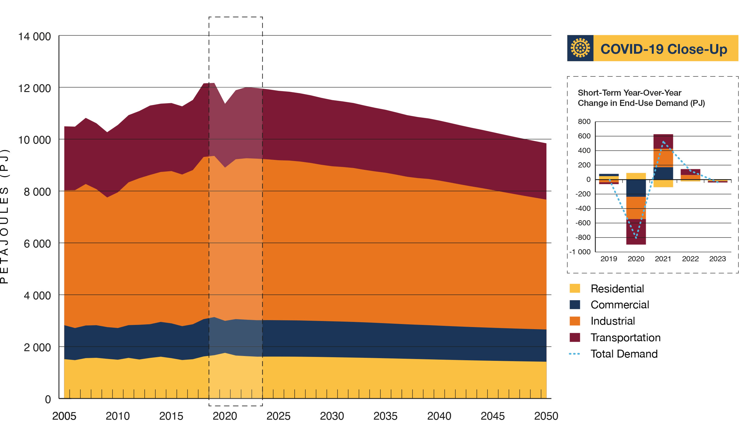 This section presents results of the EF2020 projections. The primary focus is the Evolving Scenario. These projections are not a prediction, but instead present possible future outcomes based on the assumptions described in the previous section. There are many factors and uncertainties that will influence future trends. Key uncertainties are included for each section.