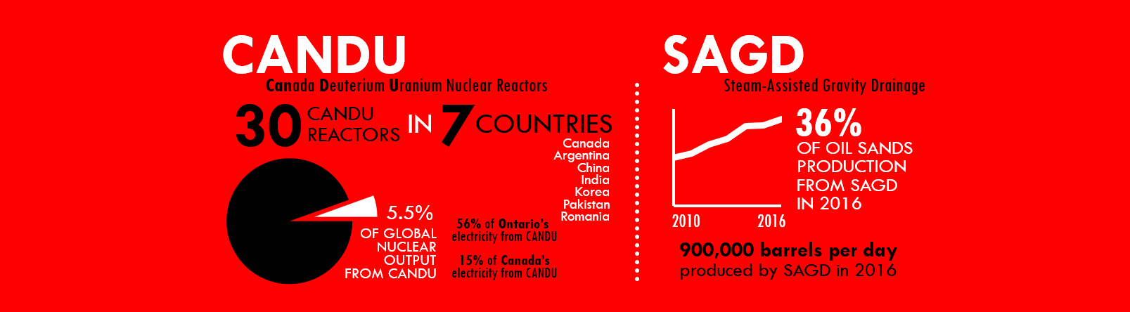 Description: The graphic above shows two images with associated captions that highlight some key aspects of CANDU and SAGD:
