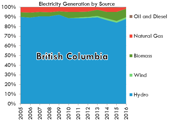 This hydro province also generates a significant about of electricity from biomass, related to its forestry industry.