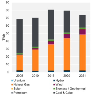 Text Alternative: This chart shows electricity generation by source in Alberta from 2005 to 2021.