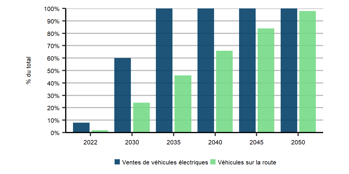 Dans les scénarios de carboneutralité, les appareils qui utilisent de l’électricité, comme les véhicules électriques et les thermopompes, sont adoptés rapidement.