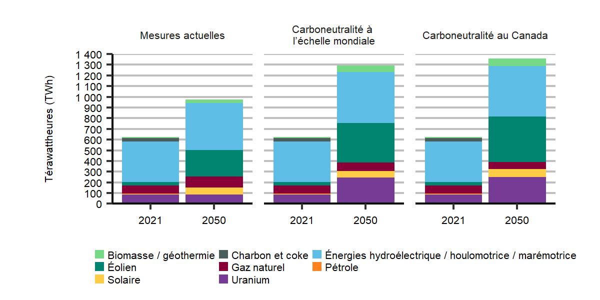 Les données à l’appui de cette discussion, y compris les tableaux de données complets pour les trois scénarios, sont disponibles dans le chapitre « Explorer les données liées à l’avenir énergétique ».