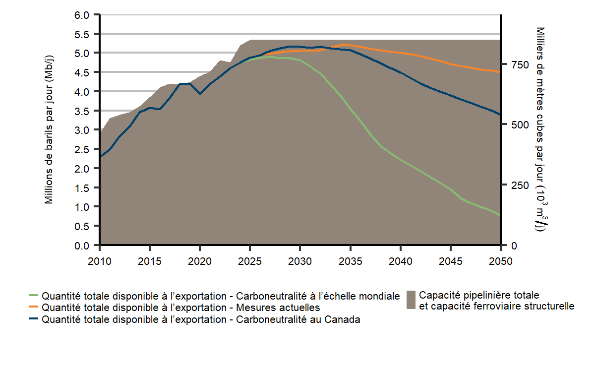 Croissance économique mondiale – Des incertitudes à l’échelle mondiale dans les années à venir, comme la demande des exportations canadiennes, la mise au point de technologies et les prix des produits de base, pourraient se répercuter sur la croissance de l’économie canadienne. Cela est particulièrement vrai dans le scénario de carboneutralité à l’échelle mondiale, dans lequel les politiques et les technologies de réduction des émissions mondiales pourraient produire des résultats macroéconomiques différents de ceux présentés ici. Par ailleurs, des événements géopolitiques, comme l’invasion russe de l’Ukraine, pourraient influer sur la courbe future de croissance.