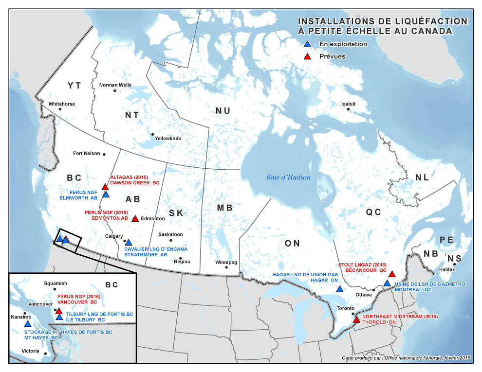 Les projets de construction et d’expansion, récents et proposés, d’installations de liquéfaction à petite échelle permettraient de réduire la distance de transport par camion pour de nombreux adopteurs éventuels du GNL comme carburant.