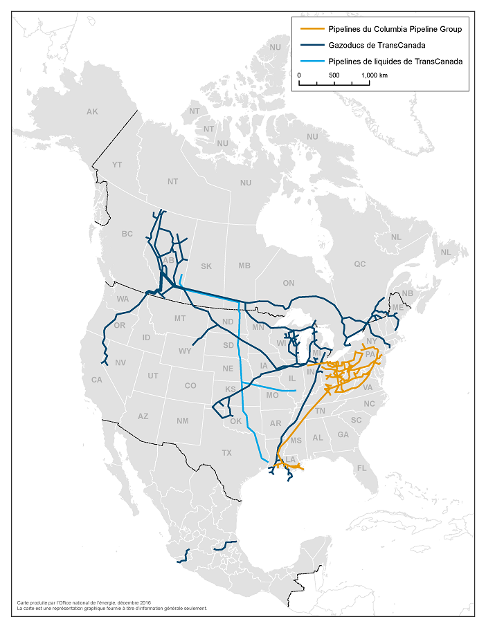Carte des actifs pipeliniers de TransCanada et de Columbia