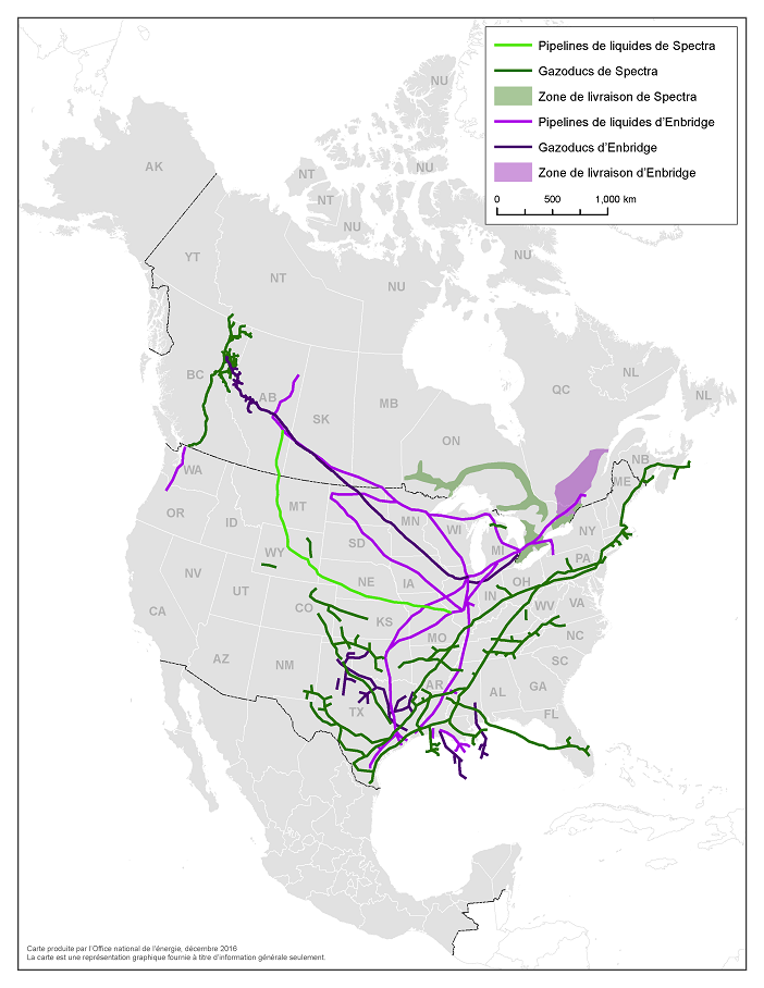 Le 6 septembre 2016, Enbridge Inc. (Enbridge) a annoncé [en anglais] son intention de faire l’acquisition de la société Spectra Energy Corp. (Spectra), dont le siège social se trouve à Houston, pour la somme de 28 milliards de $ US. L’affaire devrait être conclue au début de 2017, sous réserve d’approbations d’actionnaires et d’autorisations réglementaires. Cette transaction se traduirait par la création de la plus grande société d’infrastructures énergétiques en Amérique du Nord, avec un réseau d’oléoducs et de gazoducs de plus de 195 000 km Note de bas de page 1.