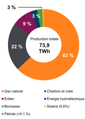 Figure 1 – Production d’électricité selon le type de combustible (2021)