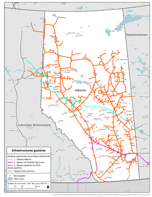 - Les réseaux de transport sont détenus et exploités par des sociétés par actions comme AltaLink (en anglais) et ATCO. Les réseaux de distribution appartiennent à des sociétés municipales comme ENMAX (en anglais), EPCOR (en anglais), à des municipalités comme Red Deer, Lethbridge et Medicine Hat, ou à des sociétés par actions comme ATCO et Fortis. L’Alberta Utilities Commission réglemente les tarifs de transport et de distribution de ces sociétés, tandis que l’Alberta Electric System Operator (en anglais) (« AESO ») collabore avec ces sociétés pour exploiter le réseau électrique et le marché de l’électricité concurrentiel de l’Alberta.