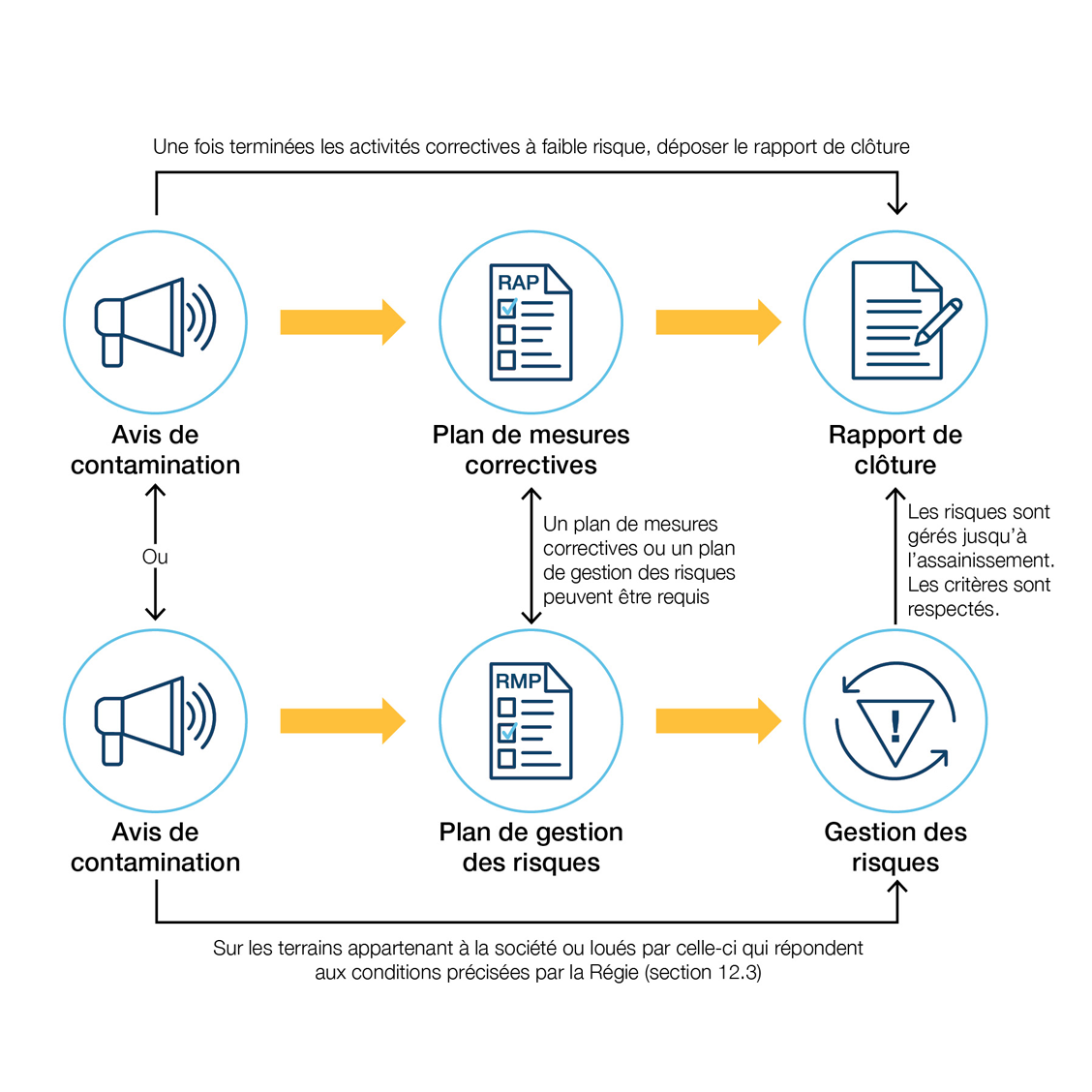 La Régie tient à protéger l’environnement des effets négatifs de la contamination liée aux installations qu’elle réglemente. Elle a préparé le présent Guide sur le processus d’assainissement de 2020 pour expliquer aux sociétés comment démontrer l’assainissement d’un site après la constatation d’une contamination ou d’un rejet d’hydrocarbures ou d’une autre substance. Le guide décrit les méthodes les plus courantes que les sociétés peuvent employer pour prouver que la contamination associée à une installation du ressort de la Régie a été enrayée adéquatement selon les critères génériques les plus stricts des gouvernements fédéral et provinciaux ou les objectifs propres au site établis.