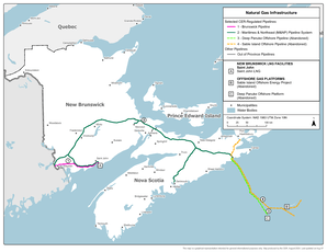 - New Brunswick exports electricity to Prince Edward Island (PEI) via two sub-sea cables, and it also exports to Maine.