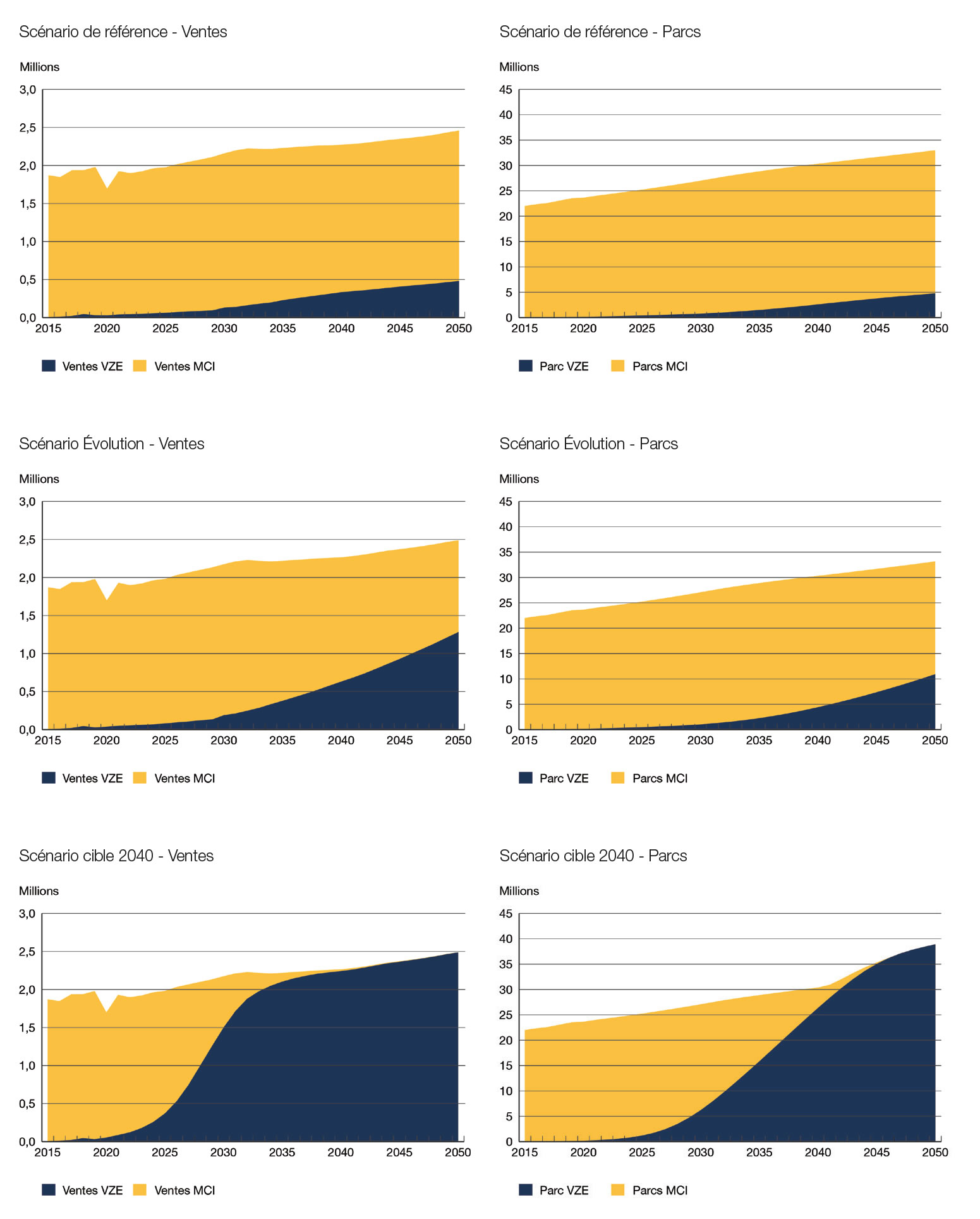Les projections du scénario Évolution présentées dans la section « Résultats » révèlent des changements importants à la grandeur de la filière énergétique. Ces changements reflètent l’hypothèse fondamentale du scénario, à savoir que l’action climatique continue de s’intensifier, au moment où les efforts du Canada suivent ceux déployés à l’échelle mondiale vers une transition énergétique. Même si le scénario Évolution présente un portrait énergétique très différent de celui d’aujourd’hui, les combustibles fossiles constituent tout de même la plus grande composante du bouquet énergétique du Canada en 2050 et ces combustibles ne sont pas complètement dissociés des émissions grâce à des technologies comme le captage, l’utilisation et le stockage du carbone.