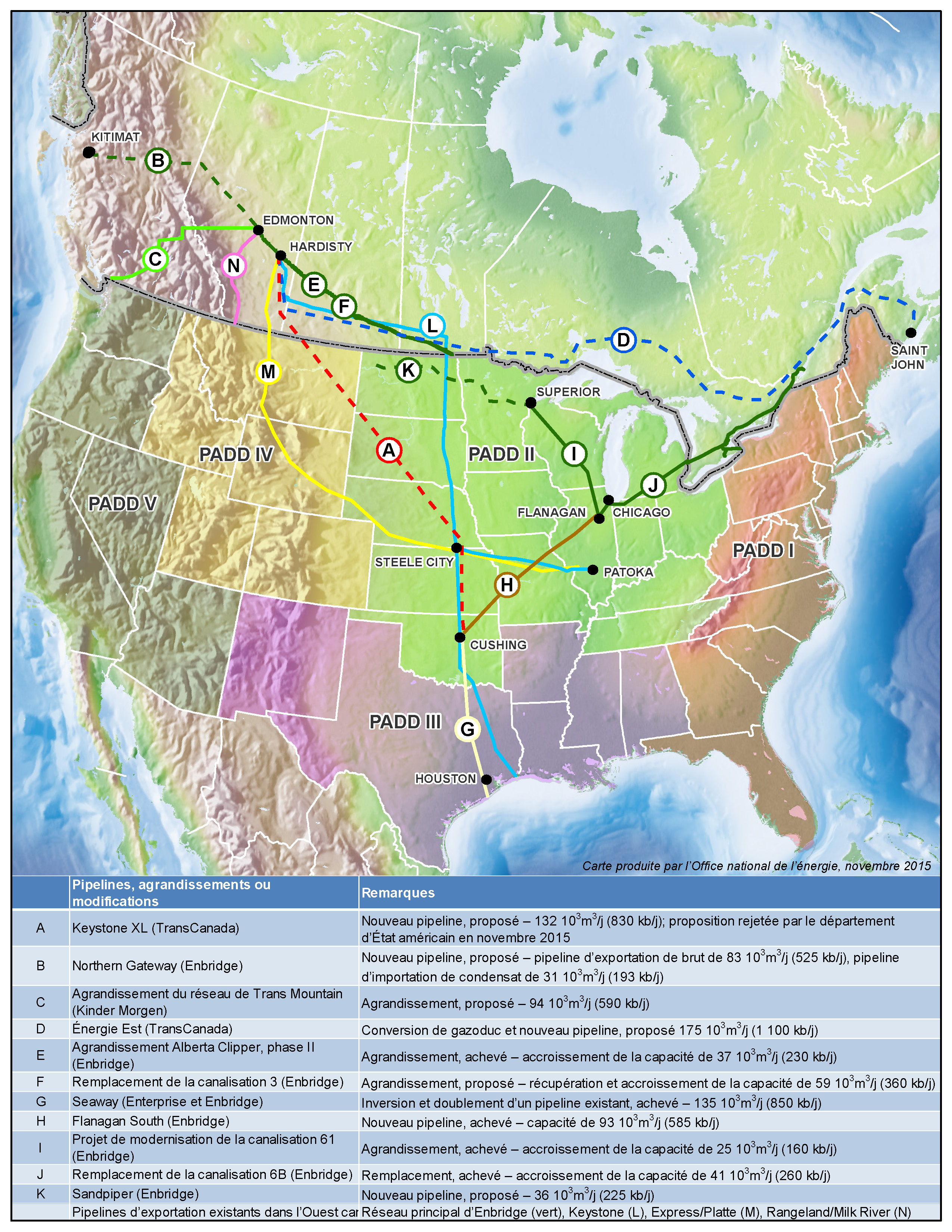 - Le rapport AE 2016 prend aussi en considération des incertitudes relatives à l’infrastructure d’exportation du pétrole et propose un scénario dans lequel aucun pipeline d’envergure n’est construit durant la période de projection.