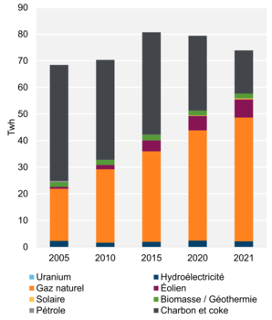 Figure 2 – Production d’électricité selon le type de combustible et la tendance (2021)