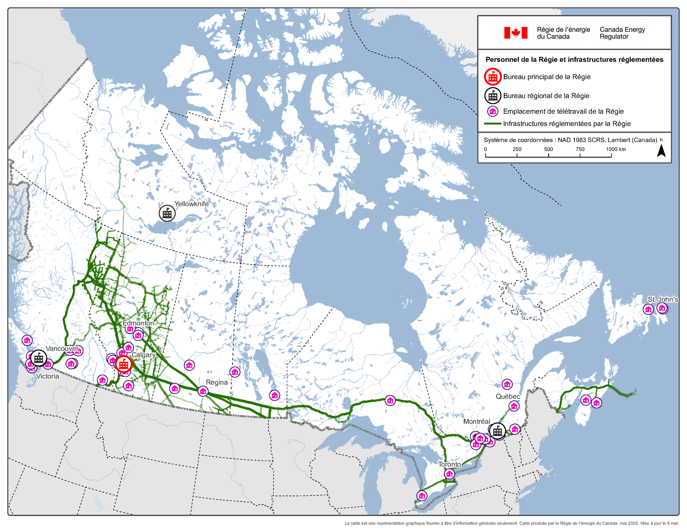- La Régie a son siège social à Calgary et des bureaux régionaux à Vancouver, Montréal et Yellowknife et compte du personnel qui travaille à distance partout au pays.